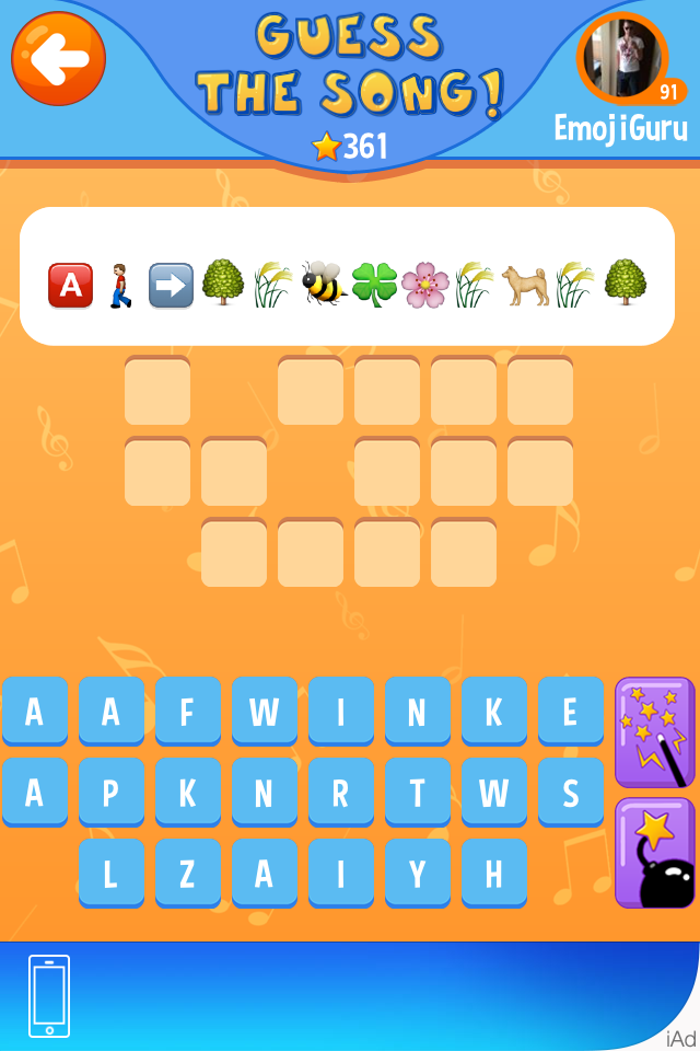 That’s why I find it puzzling that I’m still playing Emoji Stars after two weeks. The goal of the game is to describe a song to a teammate using only emoticons. Your teammate guesses your song’s title, and then sends you a new song to guess. All the controls are by touch, although sometimes you might have to drag letters into the right order to spell out the song title.