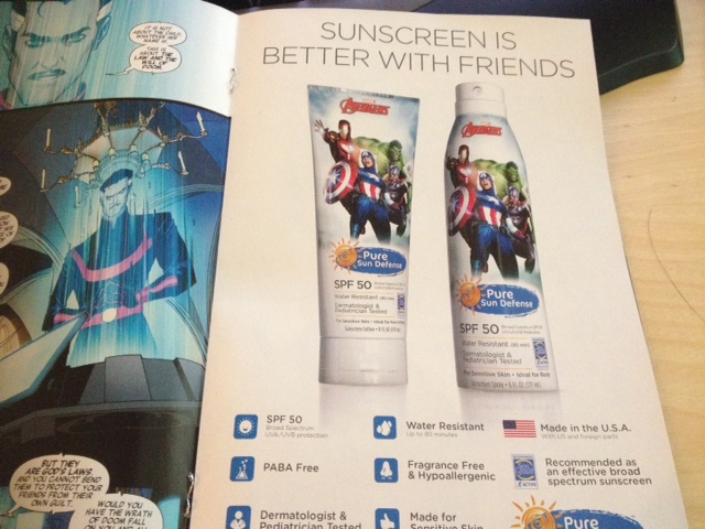 To be fair, Hawkeye is also missing from both of these ads. But Hawkeye does not occupy the same sort of role where he is representative of a historically underrepresented minority group (because well… he’s a white dude). So while it’s true that he’s not in the Hasbro Avengers HQ toy thing nor on the sunscreen, there is less harm that is being done there with his absence than when Widow is missing. Widow’s absence from the advertising is symbolic of the underrepresentation and erasure of women from comics–and what’s worse, is that this is in a comic about women, for crying out loud.